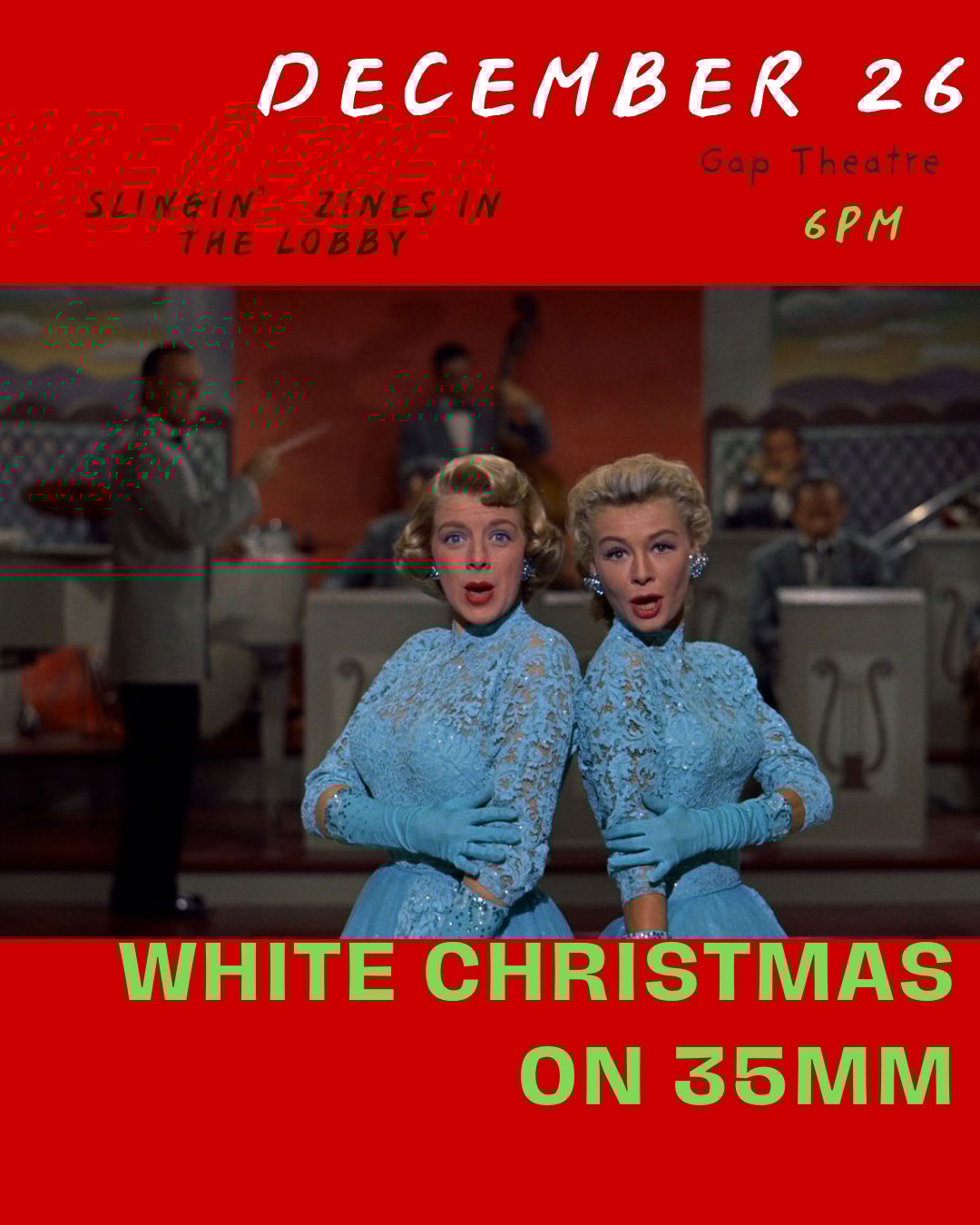Join your favorite movie pals at Gap Theatre for a special 35mm presentation of White Christmas, showtime is 6pm. Tickets available here