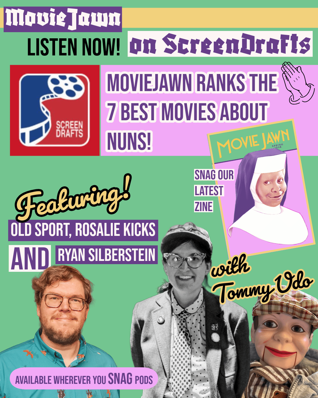Our resident Old Sport, Rosalie Kicks and The Red Herring, Ryan Silberstein recently were guests on the movie podcast, Screen Drafts to competitively/collaboratively rank the 7 BEST flicks about NUNS in celebration of our Spring 2026 print issue featuring CINEMATIC NUNS 🙏